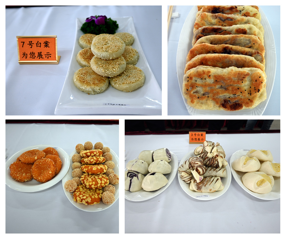 參賽選手們在規(guī)定時間內完成理論筆試和實際操作,將參賽菜品陸續(xù)展現(xiàn)在評委面前。評委均按編號進行評分。