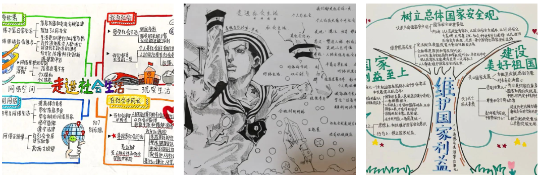 在道德與法治學(xué)科的學(xué)習(xí)中,思維導(dǎo)圖是培養(yǎng)學(xué)生分析問(wèn)題、形象記憶能力尤為重要的方式。授人以魚(yú)不如授人以“漁”,道德與法治老師注重提升學(xué)生繪制思維導(dǎo)圖的能力。要求學(xué)生將一個(gè)單元的知識(shí)體系梳理總結(jié),繪制出生動(dòng)有趣的思維導(dǎo)圖。