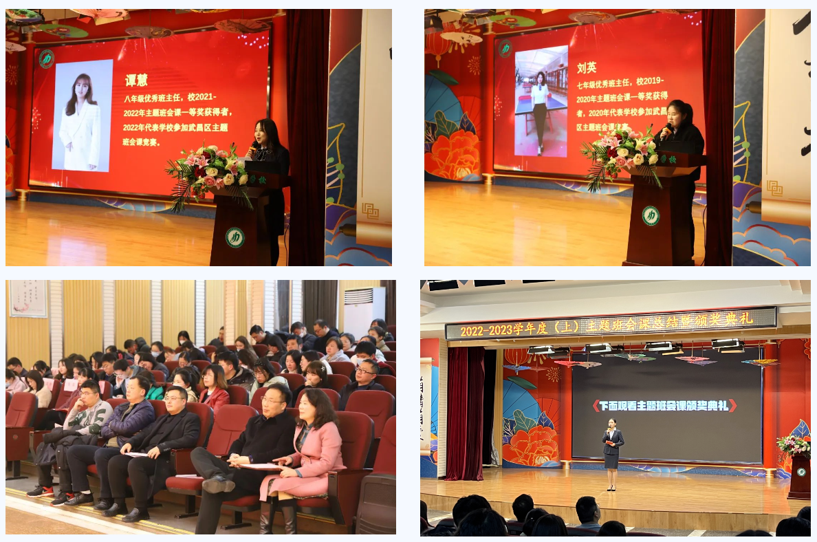 武昌區(qū)教育局德育辦宋晶主任、張炳峰校長(zhǎng)為獲一等獎(jiǎng)的老師頒獎(jiǎng),楊光華副校長(zhǎng)、代愛珍副校長(zhǎng)為獲二等獎(jiǎng)的老師頒獎(jiǎng)。