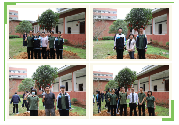 我校周靜副校長、楊光華副校長、代愛珍副校長與九年級師生同植一棵桂花樹,并在樹上系上了紅色的祈福帶,祈愿在即將到來的六月,華一寄學(xué)子能蟾宮折桂,再創(chuàng)輝煌!
