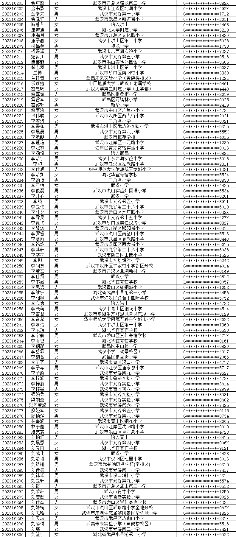 我校小升初因報名人數(shù)大于招生計劃數(shù),參與電腦派位?,F(xiàn)將錄取名單公示如下: